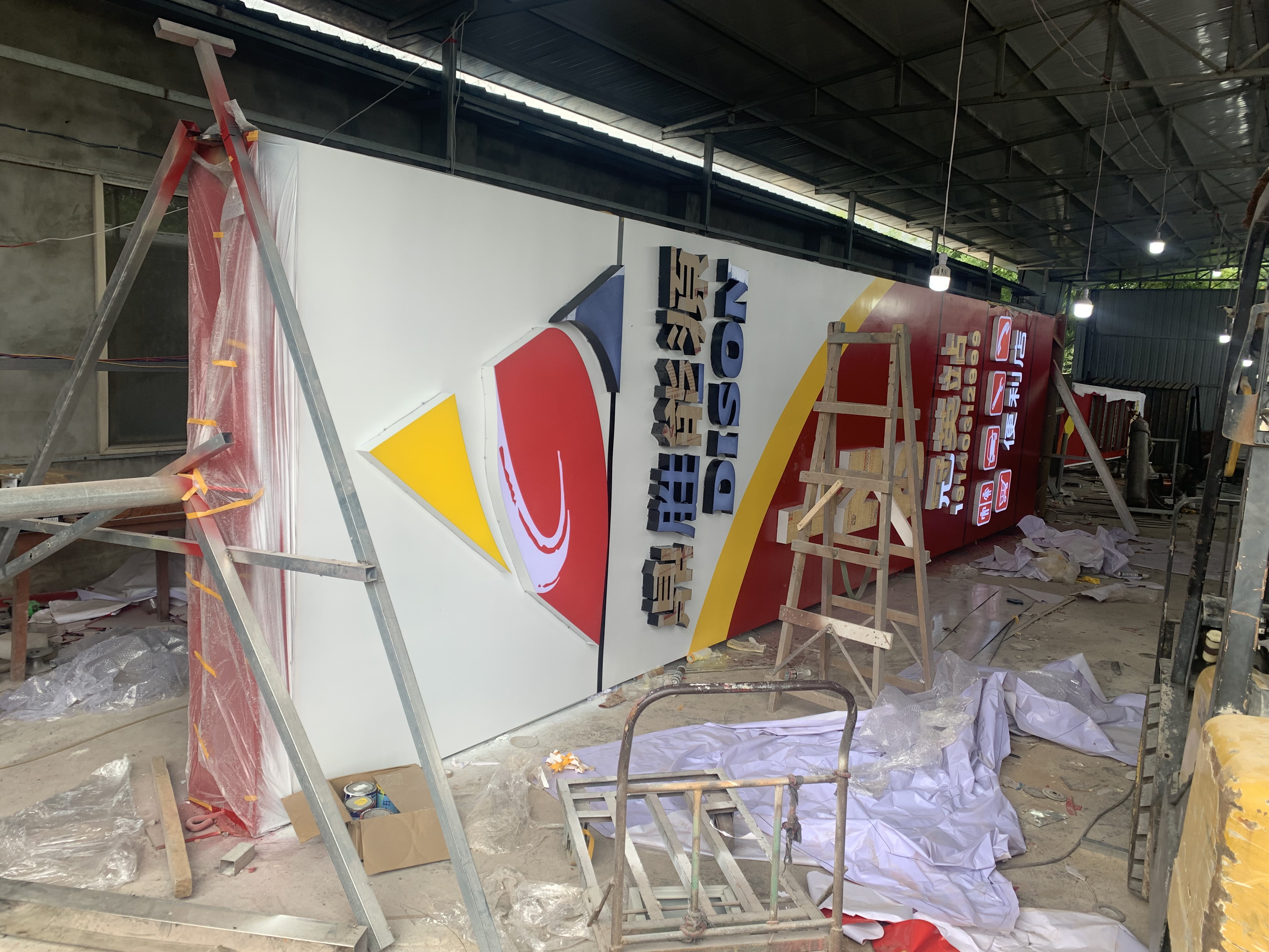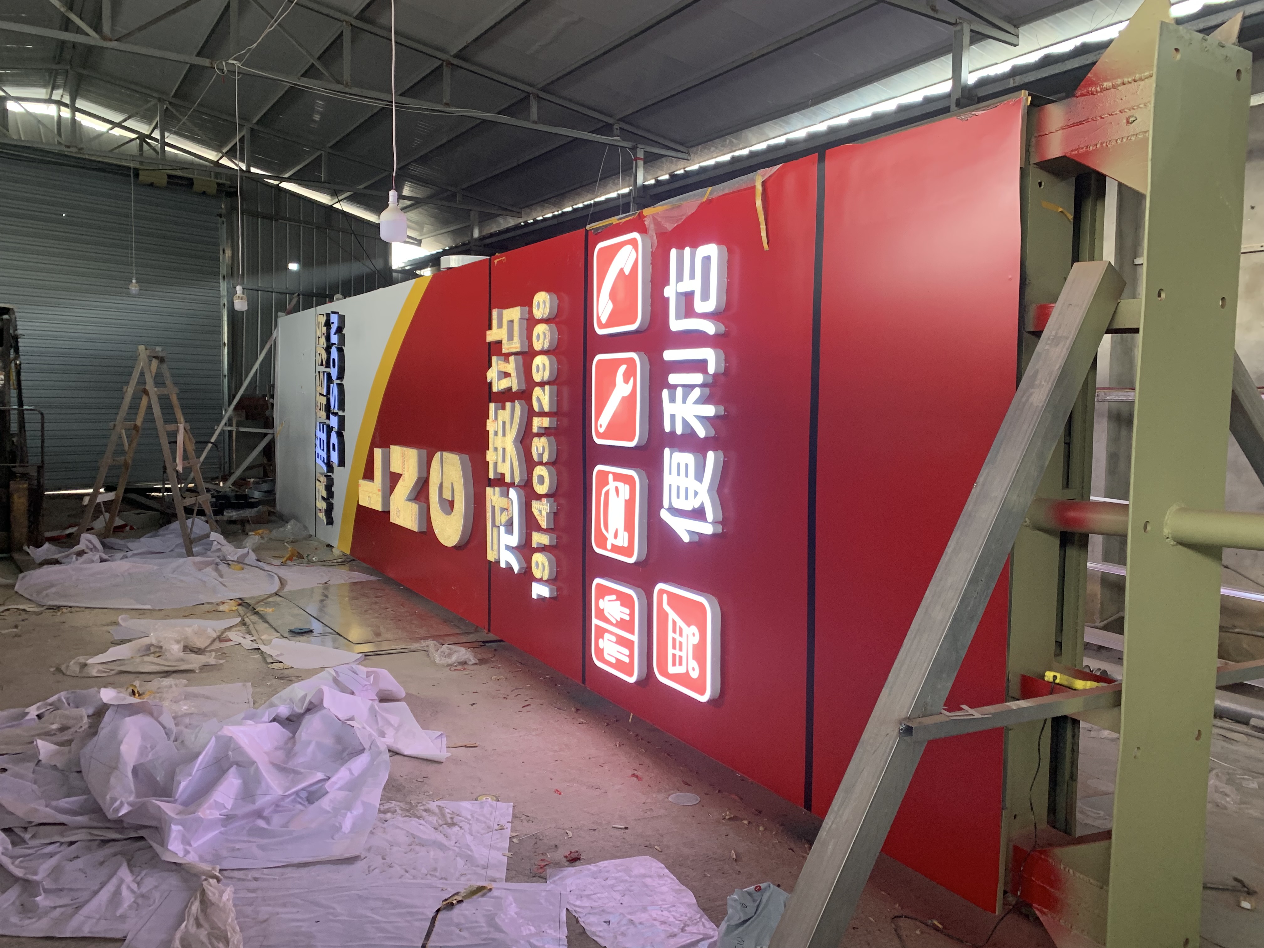 安装,此精神堡垒为把以前的吸塑材料整体更换为镀锌板喷漆工艺,原有的内置灯管全部换为铝制无边发光字。