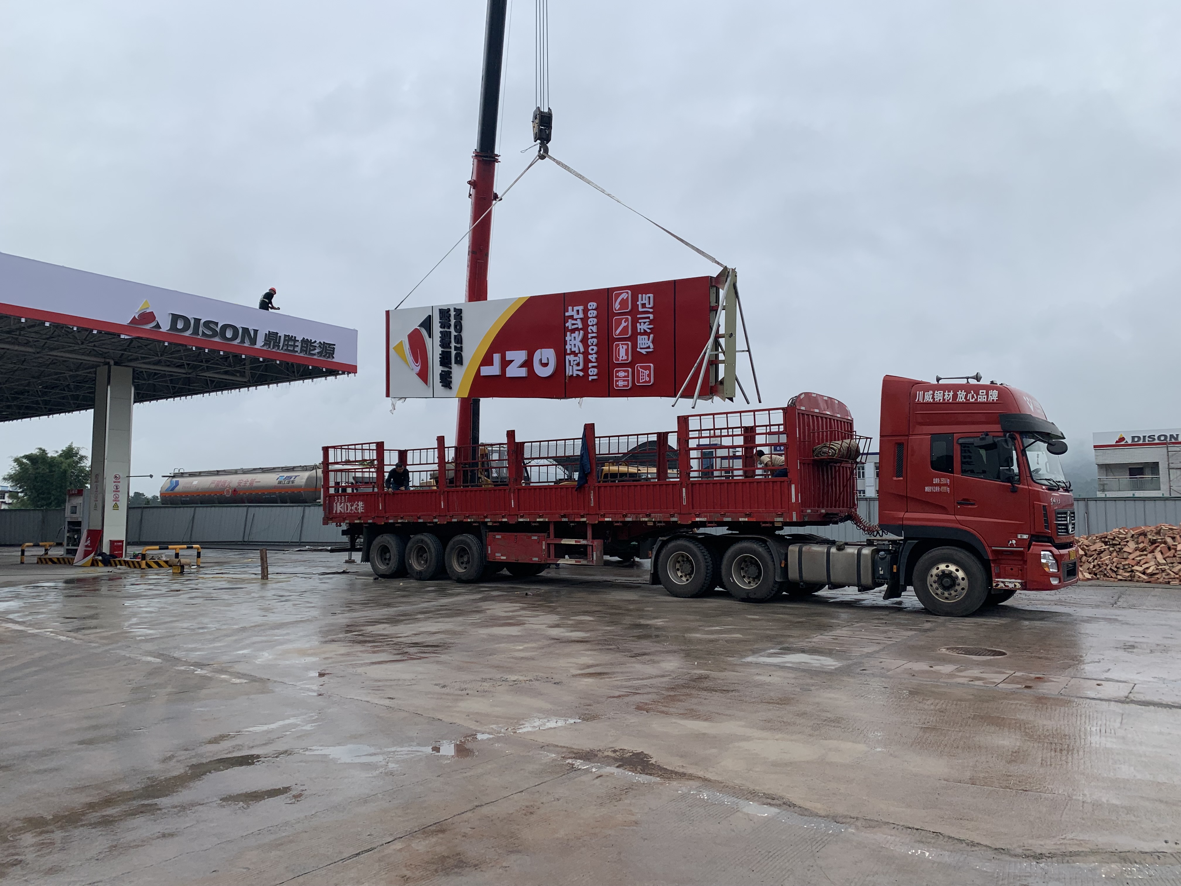随着科技的创新,能源不仅限于石油能源,LNG近年得到大力发展,宜宾冠英高速服务区LNG精神堡垒制作加固