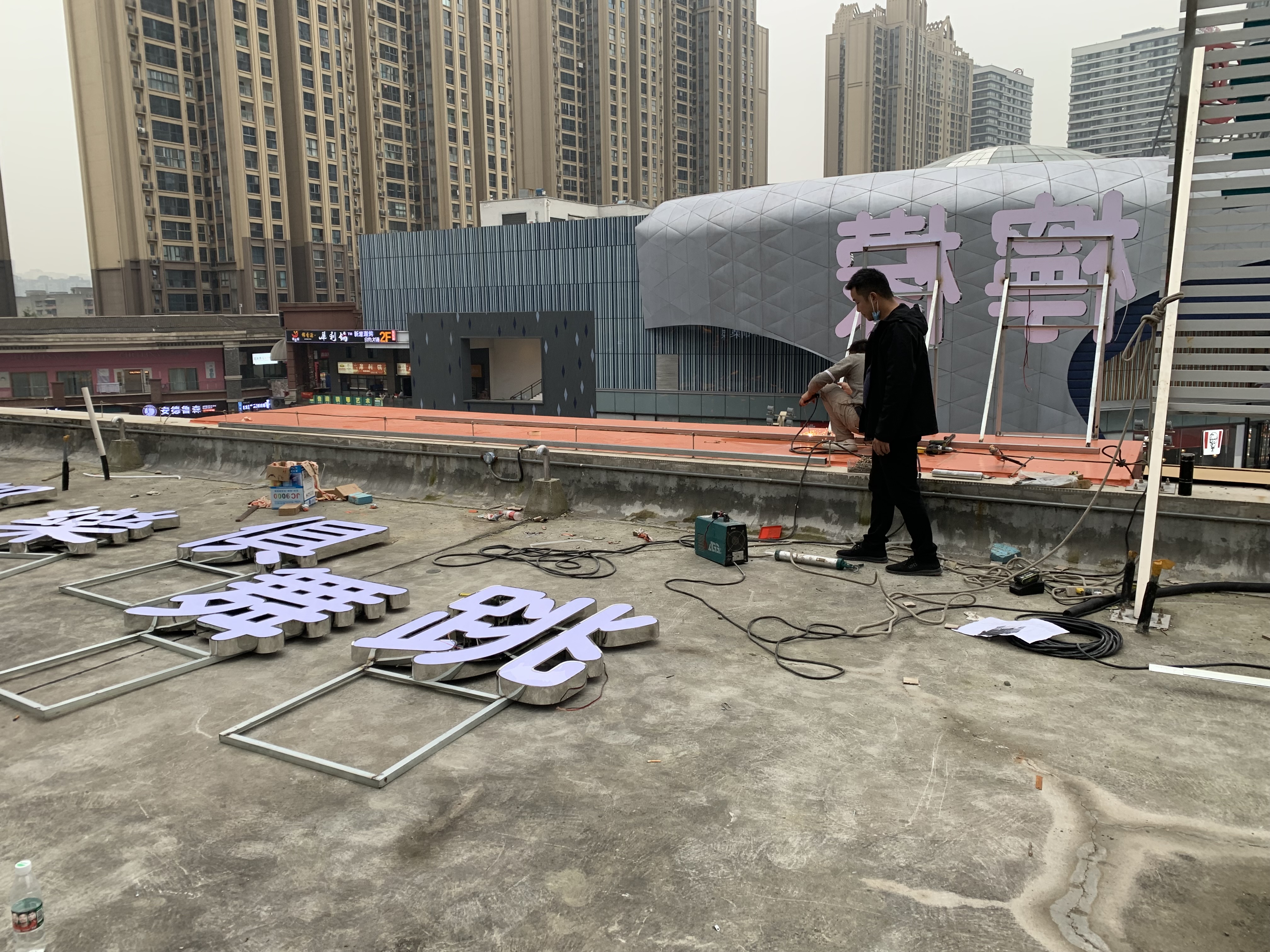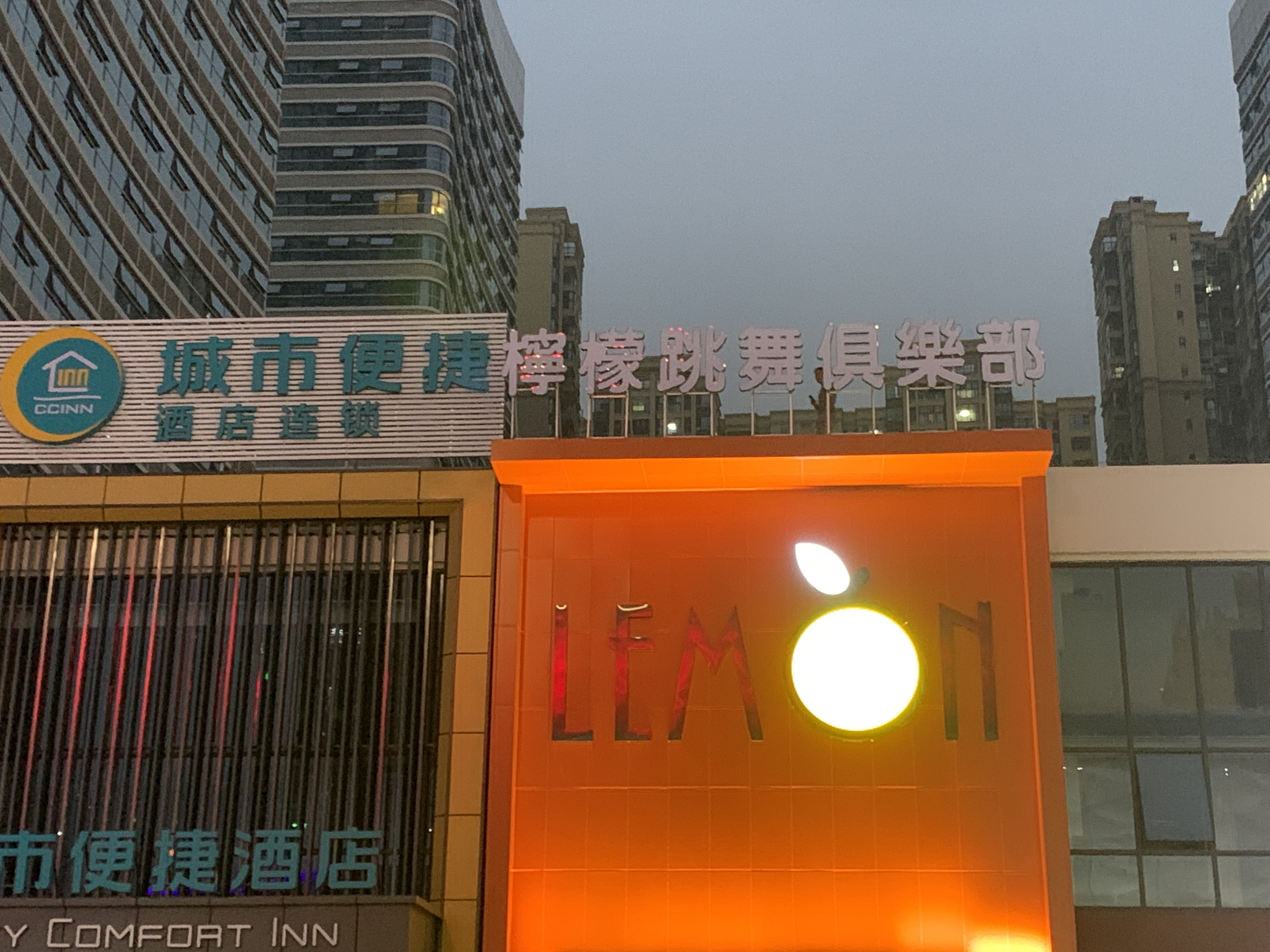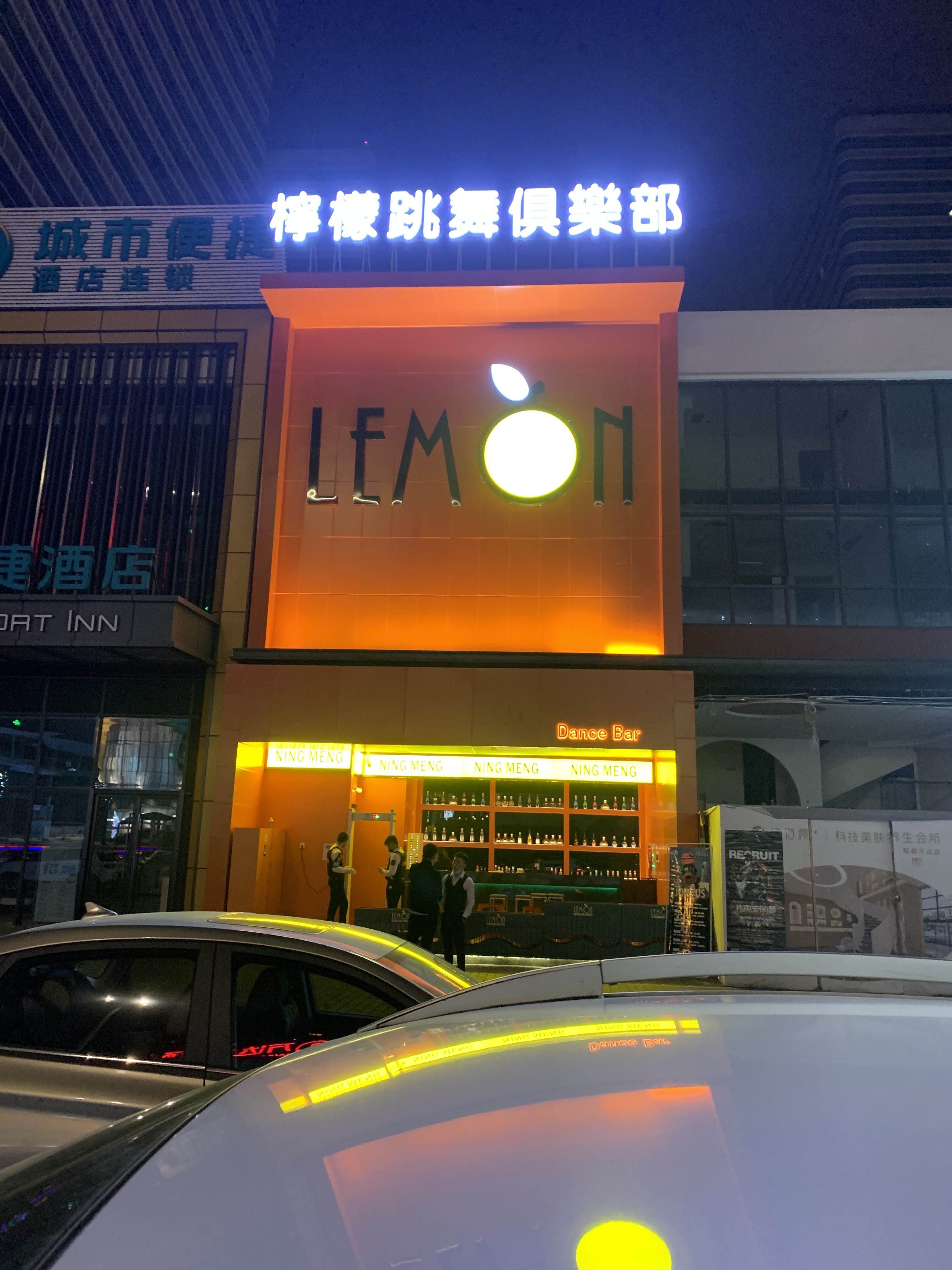 成都郫县万达广场柠檬跳舞俱乐部平面发光字,制作安装,材料为不锈钢平面发光字,灯片为蓝景光电的防雨贴片模